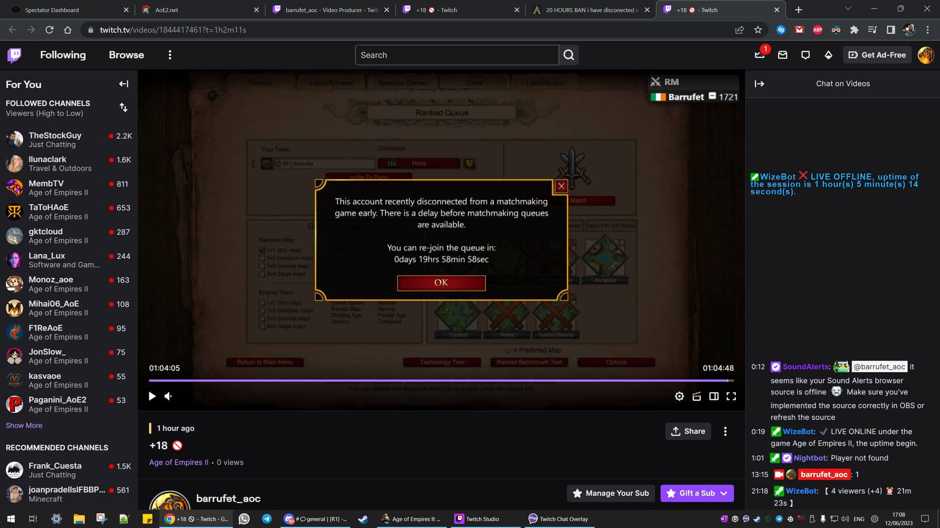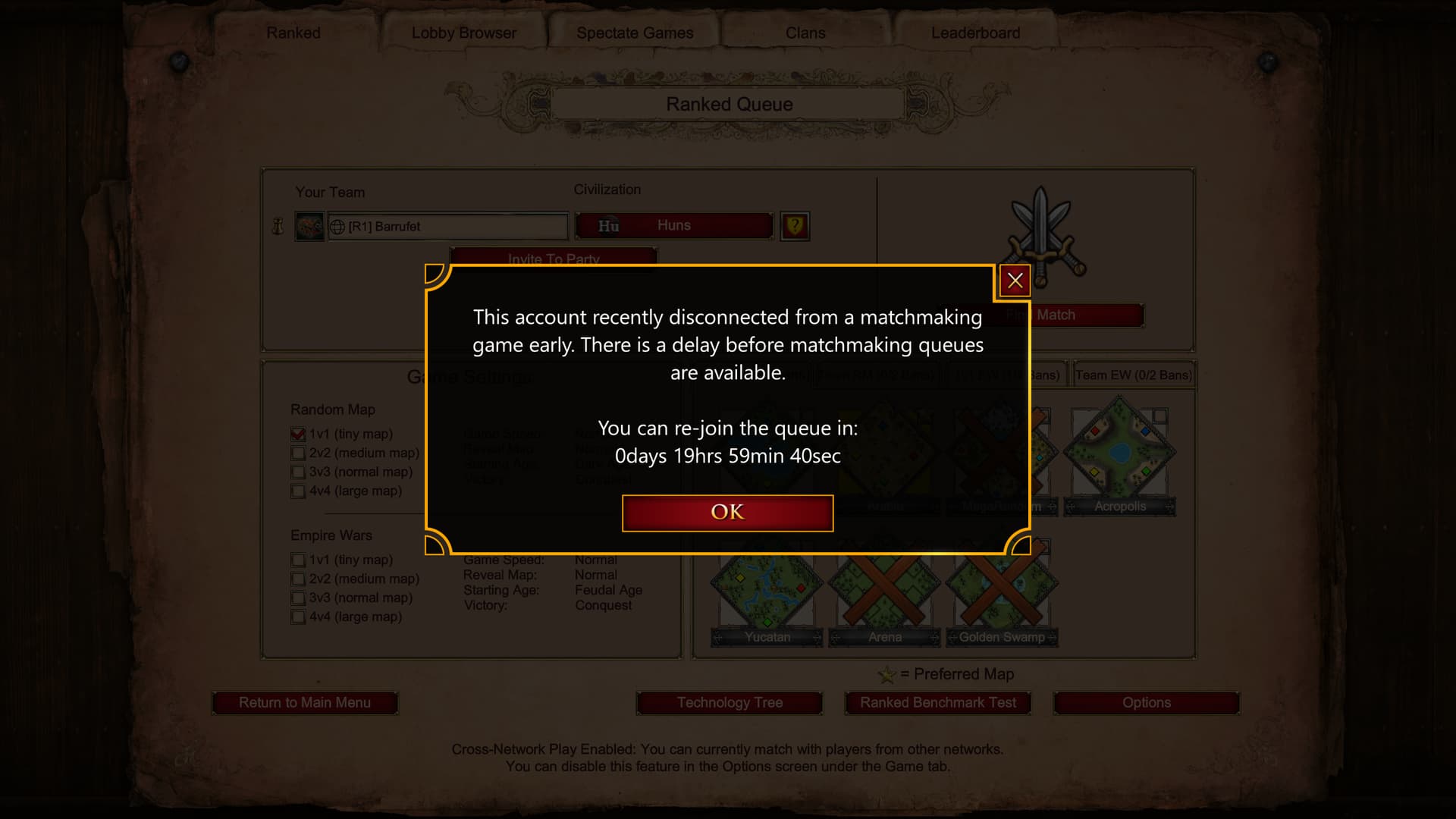 Game gets stuck on Queueing up screen and then i receive a 20 hr BAN. This was streamd live