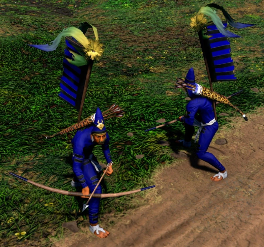 I do, however, not know if there are any game assets in the game that corrispond with the english longbow… the best version that I know would be the bow from the aztec arrow knights, maybe you can recolour the tips to be dark brown (historically, they were made of cow horns so that they were more durable)