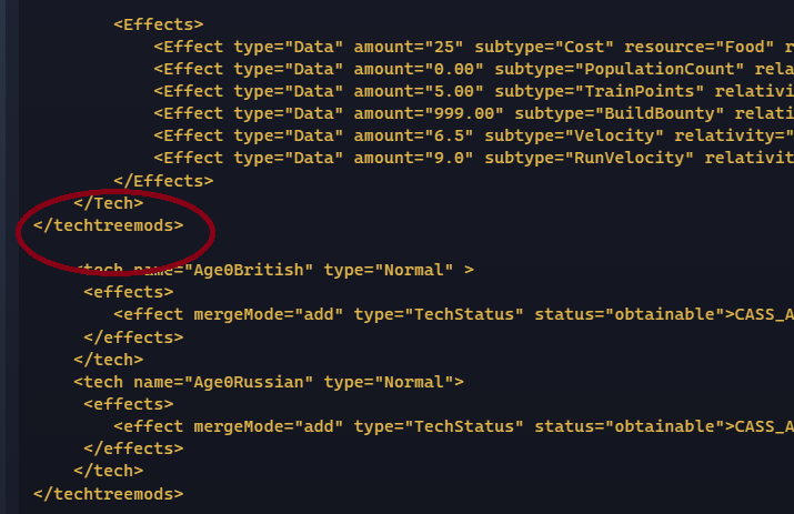 -Don’t use AI to write code. I recommend searching the “techtreey.xml” file for a technology that does what you’re looking for, copying it, and modifying it to suit your needs. Pay close attention to the code you’re reproducing and maintain the same structure. The same applies to all other files in your mods. You can also download other people’s mods and review their files.