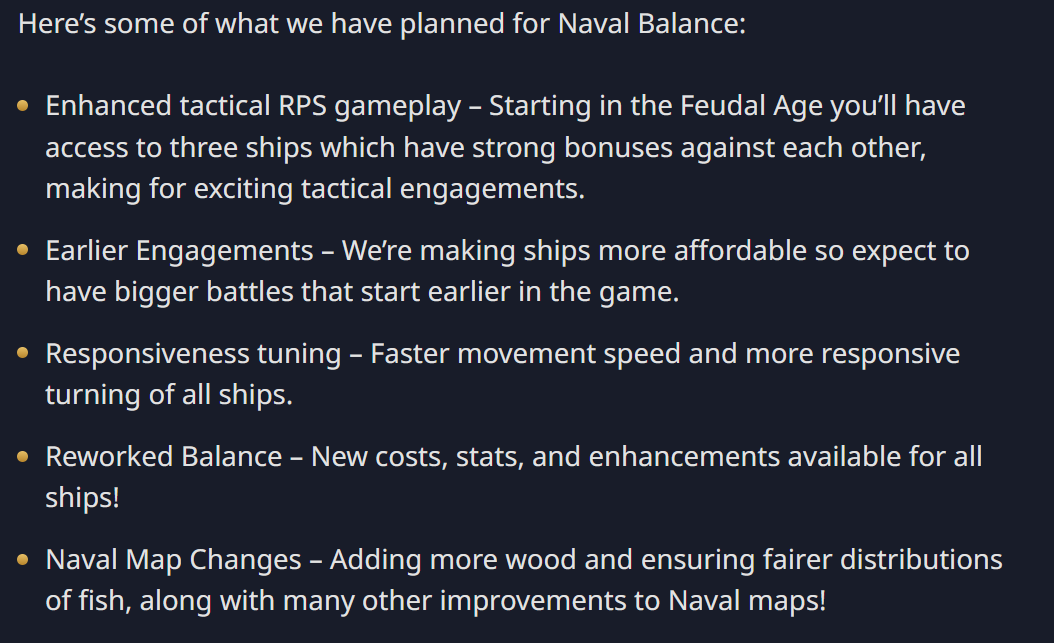 Absolutely agree with the concept of coastal outposts, similar to land town centers, providing a certain range of protection in the early days. In addition, it is requested that as the times change, we can develop and increase the field of vision of the archer ship, which allows the archer ship to play the role of a scout at sea in the later era without completely losing its use.