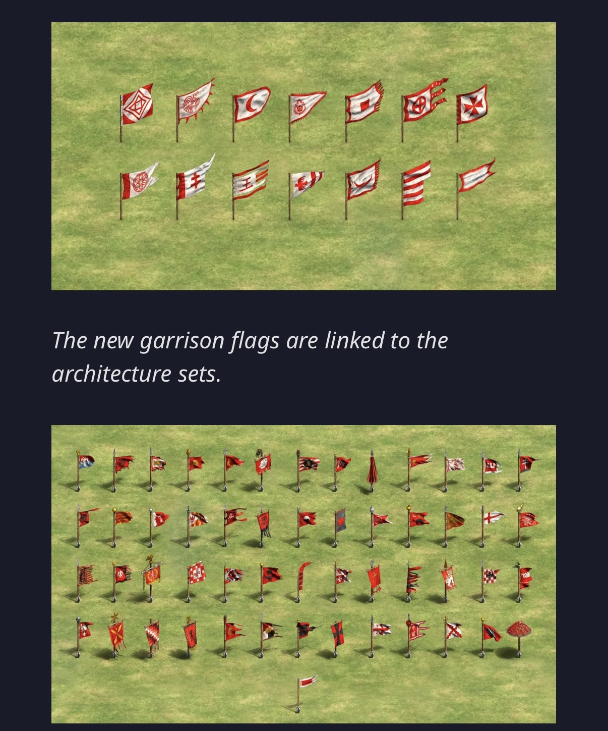 It would be great if there is a list of which civi or building set gets which flags so its easier to identify.Also are the same flags used for relic garrisoned buildings?