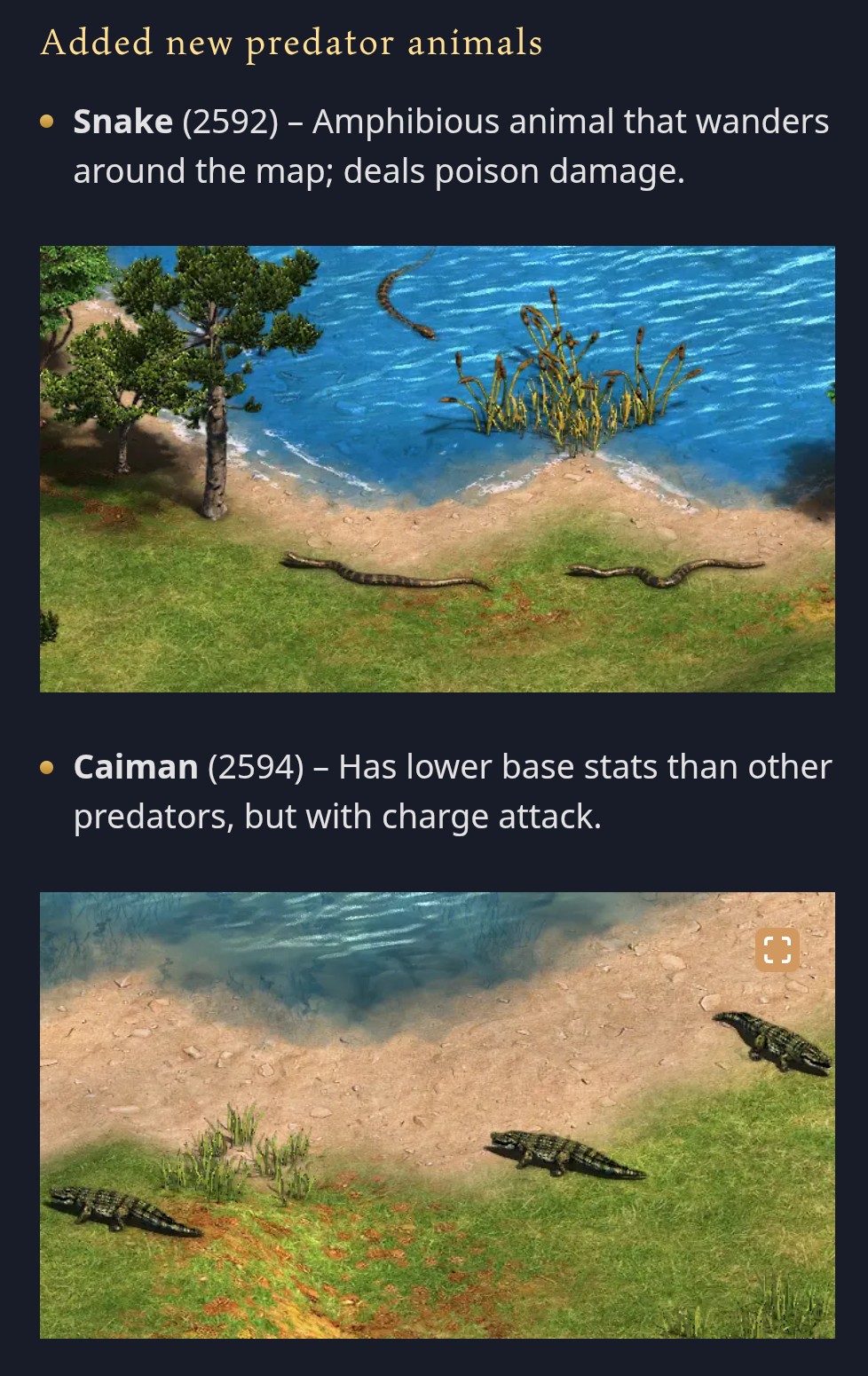 Great stuff. ES already planned something like this for AoE1 (as implied by an unused swimming Alligator), now it finally works. Looking forward to hippos. Maybe there could even be swimming human unitsā¦