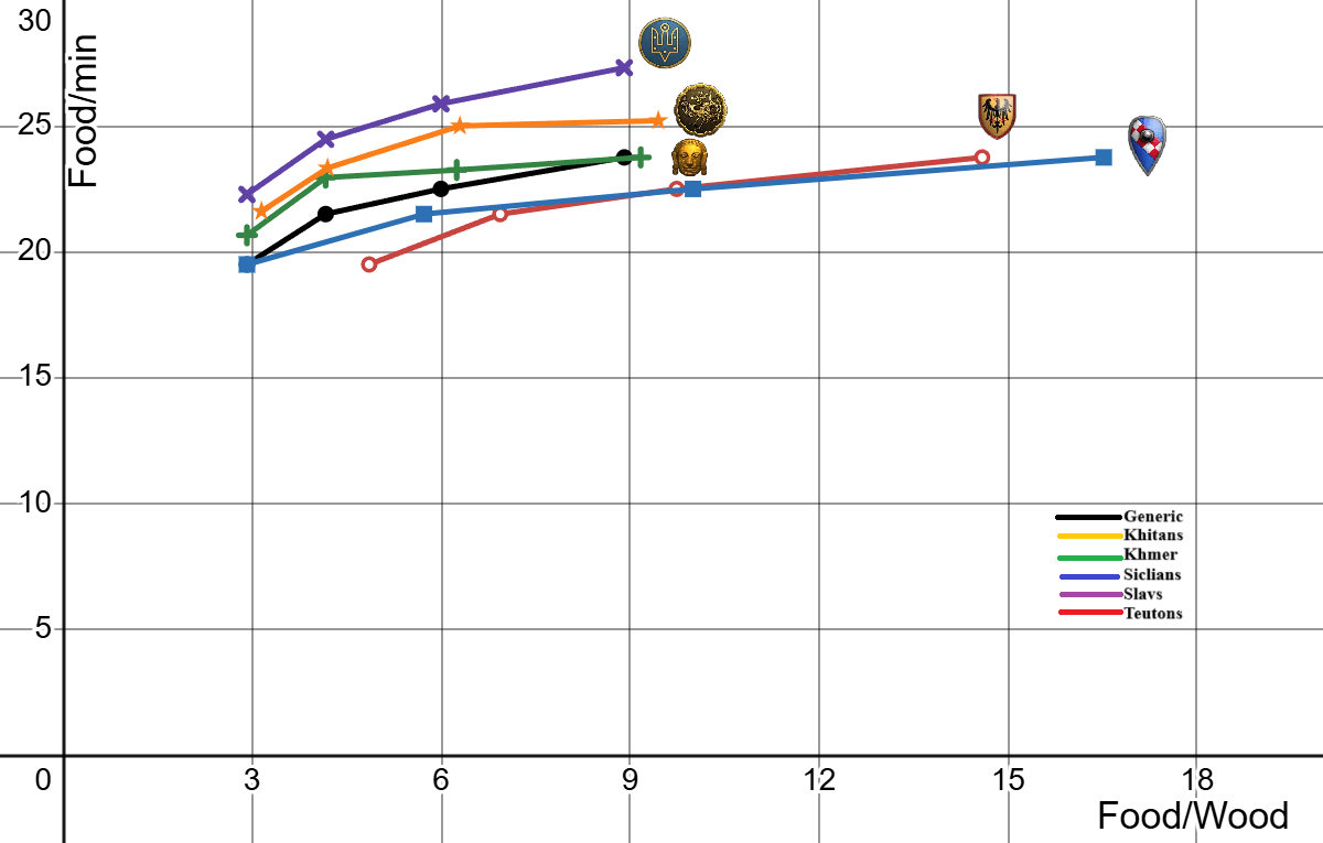 What would be actually more telling if we tested or calculated how much food you can produce with a feudal eco at each timestamp. Khitans have way better food availability thx to both pastures being cheaper than 2 farms (less vills on wood needed to sustain placing pastures) and directly by less carry capacity.