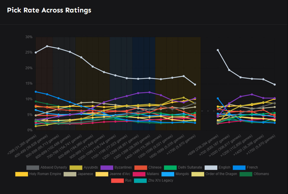 Para que tengas una idea hace unos dias es la primera ves que veo un elefante enemigo y no sabia que hacer contra el. Los devs nerfean y buffean cosas dependiendo de: winrate y pickrate, ellos quieren que juegues todo el juego aplica para cualquiero juego “competitivo”. Tampoco quiero un balanceo a lo dota, los devs aca no existen, pero almenos la mitad de las civs con pickrate parejo almenos. Incluso encuentro fuertisimo a los arqueros como dije arriba, el verdadero counter de un grupo de 40 arqueros es el mangonel, sale mas caro, son lentos, se arman en teamfight, son lentos para craftear esta totalmente fuera de balance