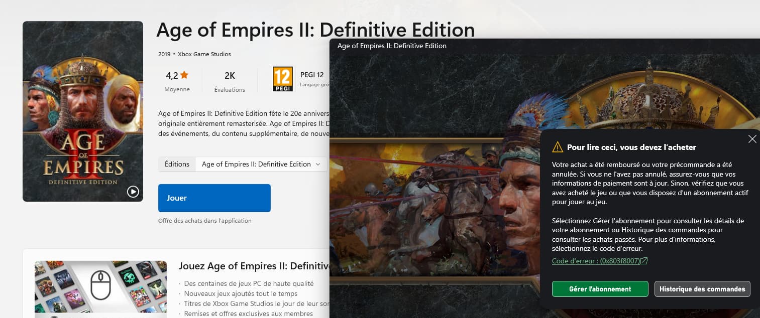 On microsoft store, I still own the game but it’s why I open the game that I have the error.