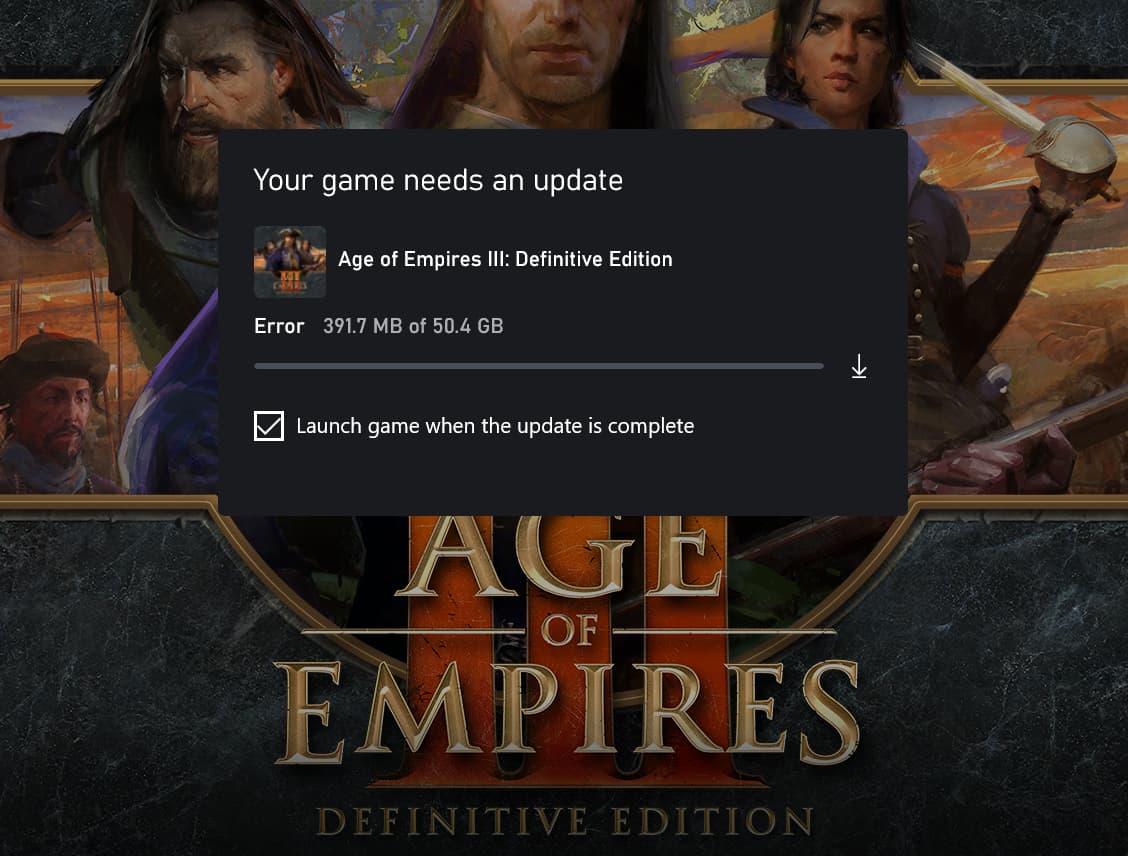 deleted game and went to Microsoft store and reloaded the game again thinking the reload would have the upgrade. (took an hour for so many gigs). Still did the same thing when I started the game, wanting to load an upgrade and stops with an error message.