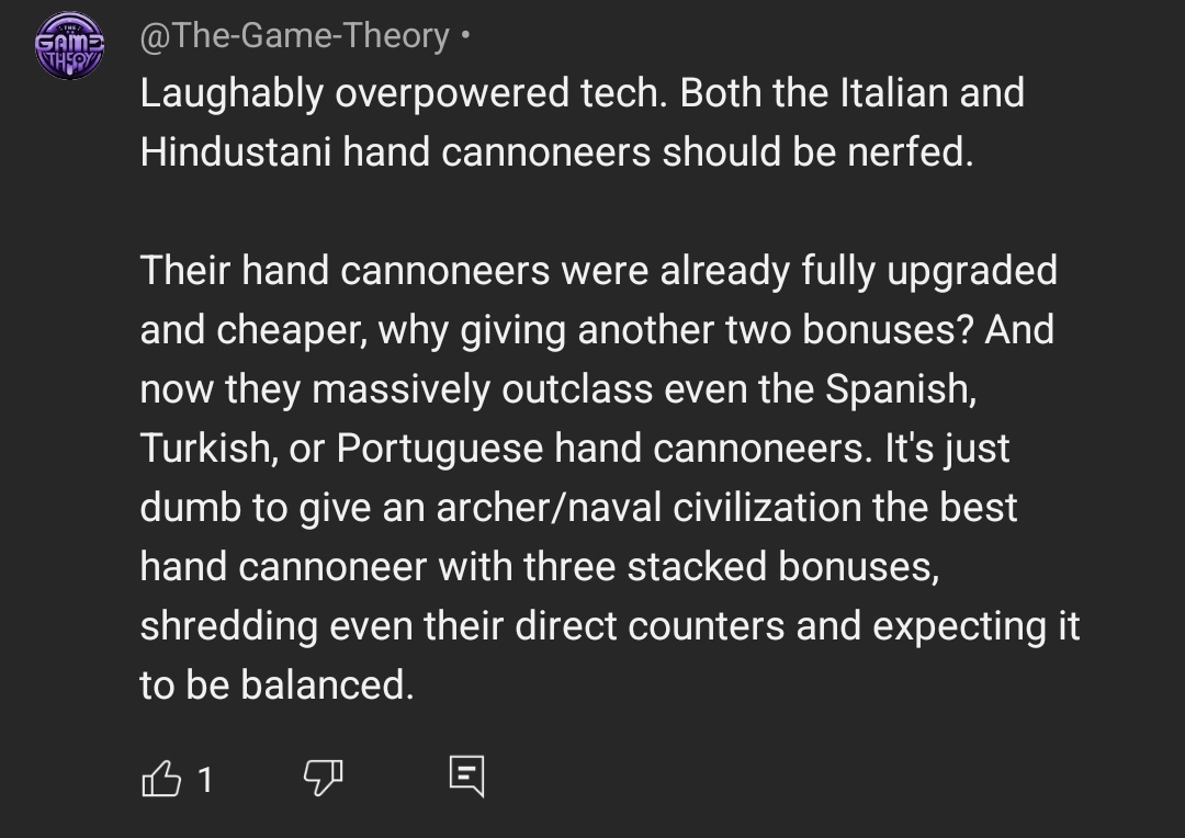He said there has been powerceep and propose to nerf all civs but only buff Turks and Janissaries. How delusional is the logic that ask for 8 range janissaries but nerf Bengalis11