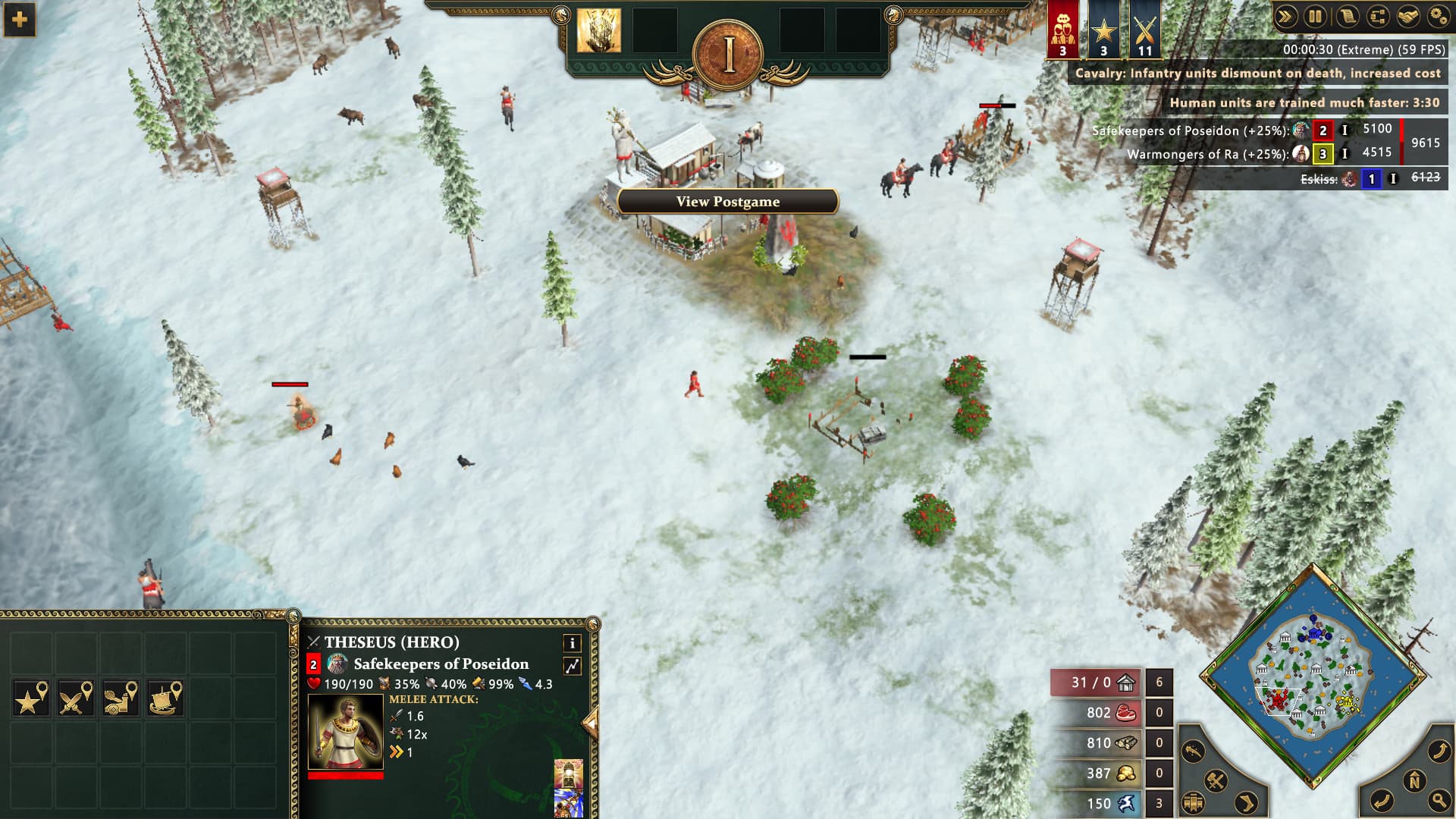 I also think I understand why you were unable to reproduce it. It only happened for me when I restarted the game. As in, I started the scenario, ran it for about 4 minutes of in-game time, and resigned. Then from the resignation screen, I hit “restart game”, ran it for about another 4 minutes of in-game time, and got the above screenshot. I have the replays from both games uploaded here.