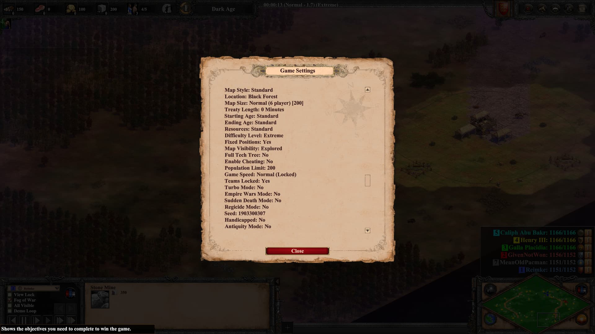 - Start a Black Forest Random Map game with the appropriate map size and number of players. Let it run for a couple of seconds. Then quit.