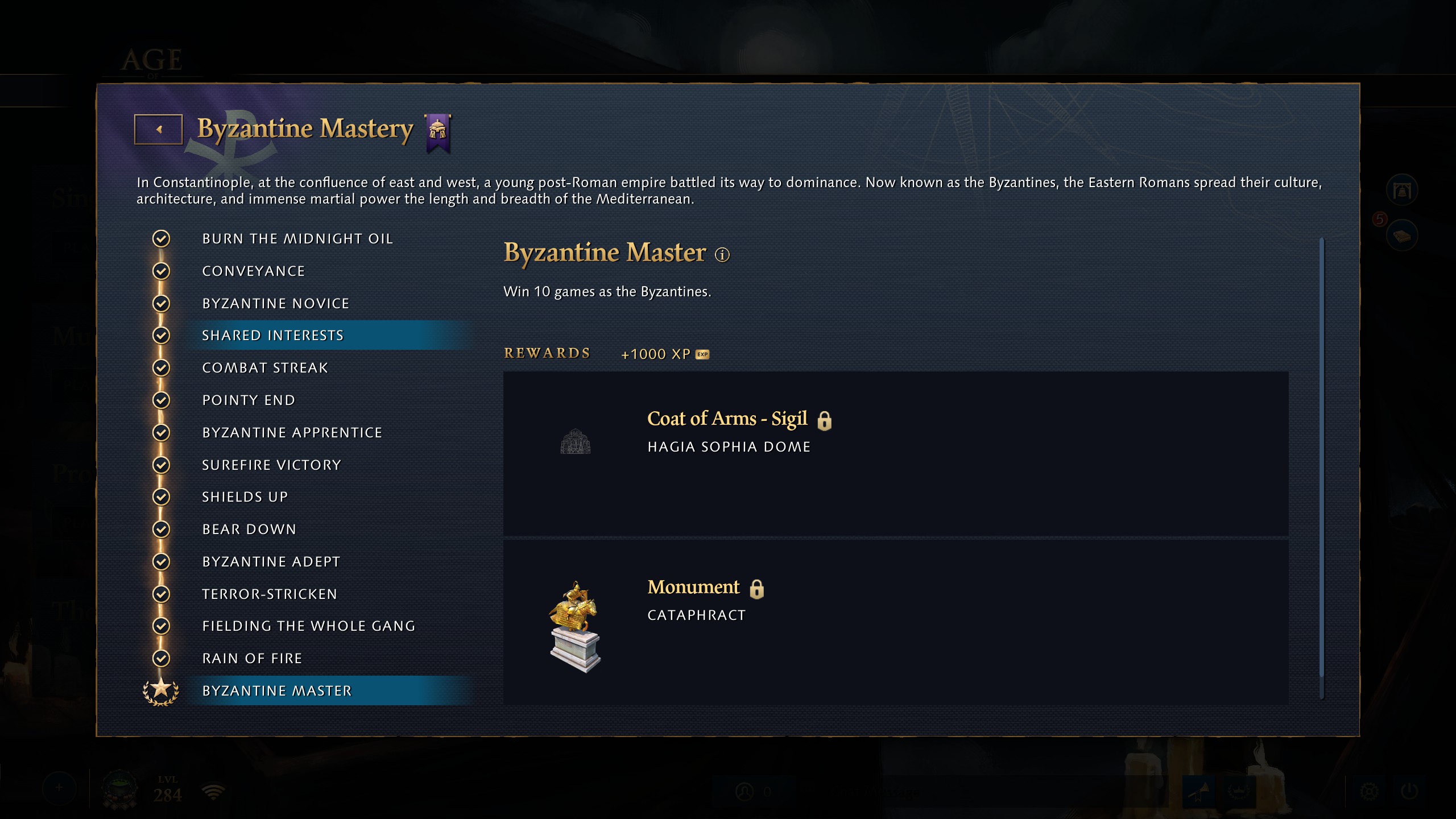 As you can see, the monument and prize for the mastery is not unlocked, even though it says that I have completed the byzantine mastery