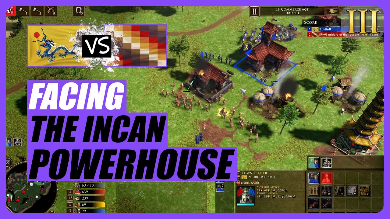 Inca you’re encouraged to play defensively. You don’t need to aggressively expand as much with them. If your opponent takes the coin mines no biggy you don’t need them. Enemy cavalry are raiding your lumberjacks? then use Moon Ceremony.