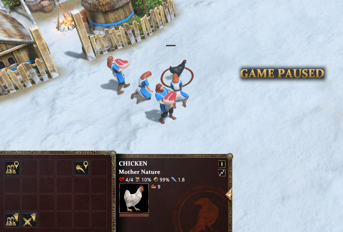 This also has the effect of villagers following the chicken around while gathering food.