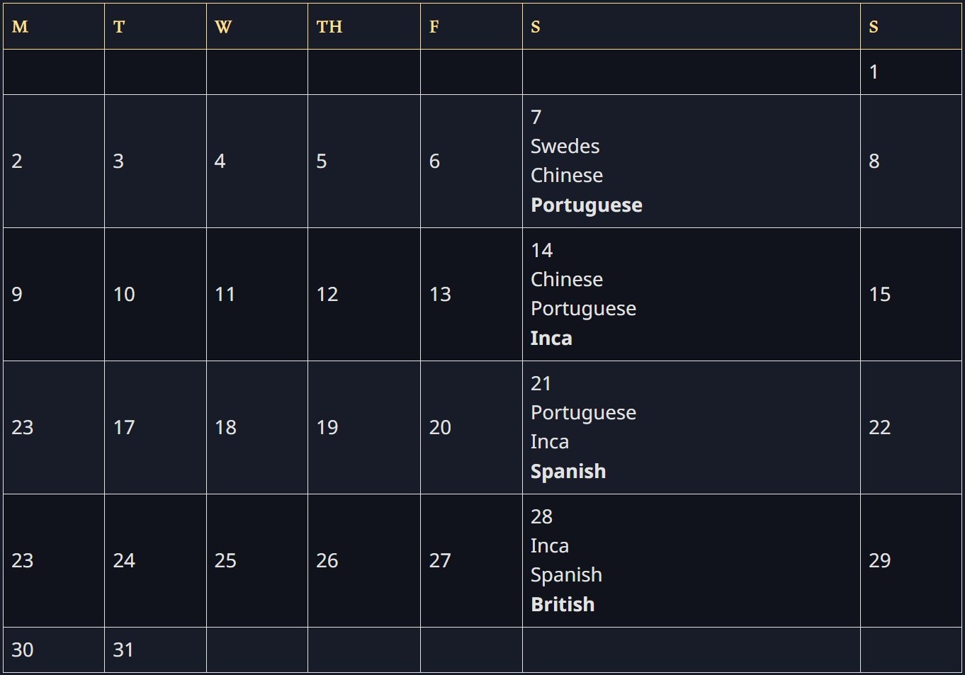 Keep checking back and we will update next month’s schedule! Civilization rotations occur on the date indicated on the calendar below at 4:00pm PT / 7:00pm ET (24:00 UTC the following day). Times will slightly move due to time changes in different regions.