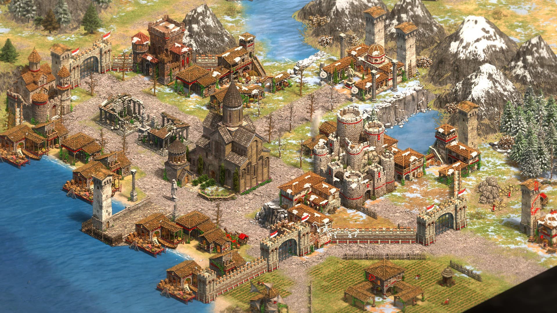 Huns do not have access to most common buildings like Farms, Lumber camps, Mining camps, Fish traps, Markets, Castles, Stone walls/gates, Universities and, until you won’t capture one of them, neither Docks nor Siege workshops. However you can build mule carts to collect resources and train unique units at the chief’s yurt. In the Stall you can also research unique techs.