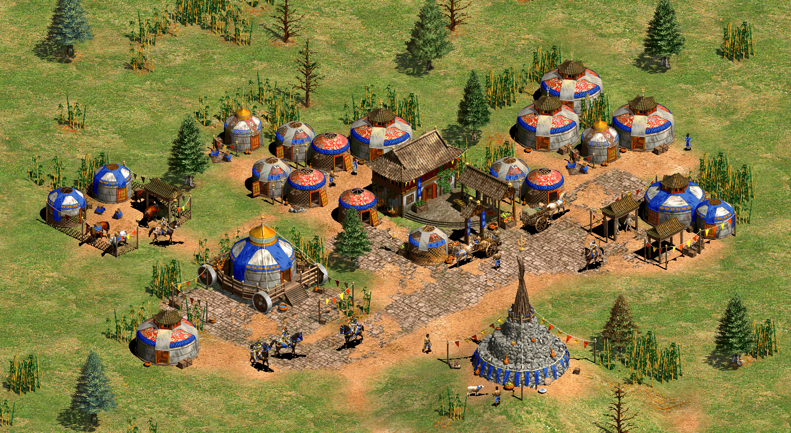 Besides, we already have some examples of how yurts can help bring out the nomadic identity of a civ, be it pasture , chiefs tent, or the qing village from aoe iii.