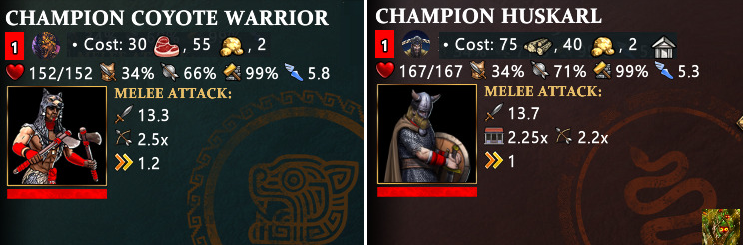 Though players need to understand that Coyote warriors are not full pop unit like Huskarl. Huskarl is stronger thus will win and snowball full pop fights