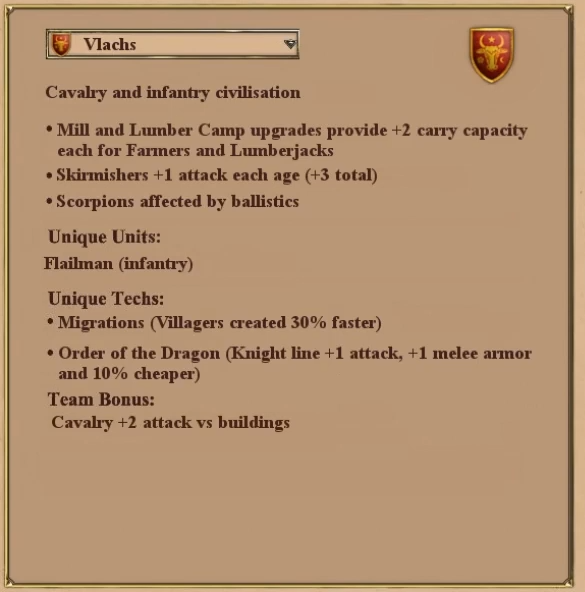 While for the Vlachs I still think they should have the Champion despite having an infantry UU in the castle. Giving you an option between these 2.