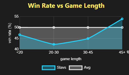 As you can see, they experience the same approximate winrate curve as the Dravidians. It takes time for that bonus to kick ### ### at the end of the game, it becomes extremely powerful.