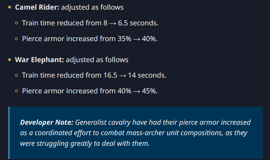 didn’t elephants got a small rework with the piercing armor and dmg vs archers increase? i thought thats a buff. seems not. sad. when i play eggy elephants are my favourite units but i don’t play much atm and especially not eggy.