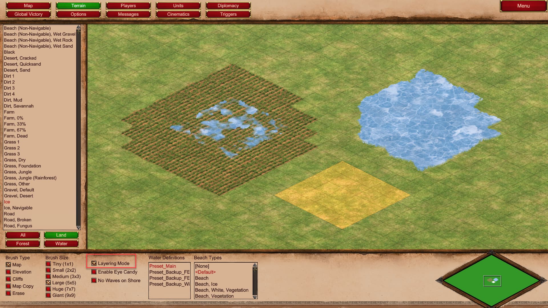 01: Screenshot of terrain tools in AoE2:DE editor