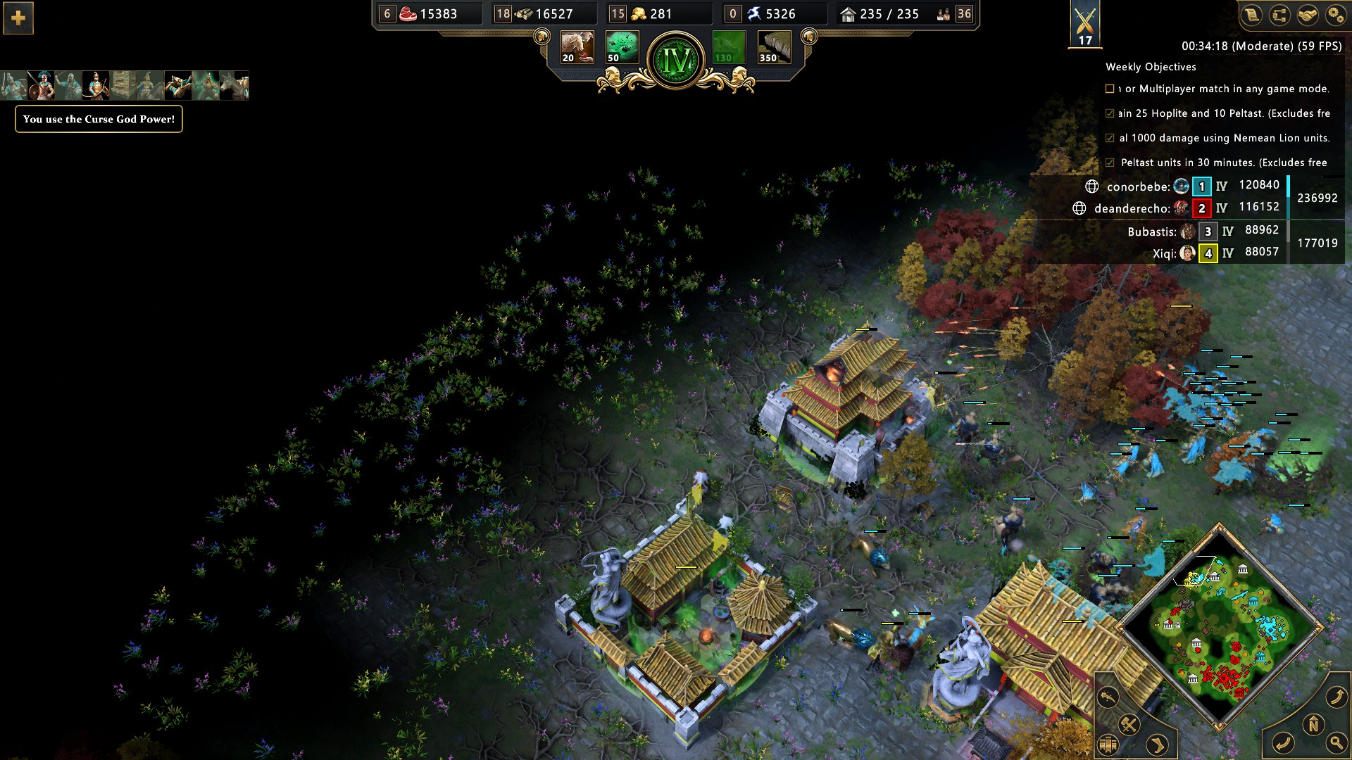 The visual effect for the Chinese “Forest Protection” god power is visible in the black space of the fog of war.