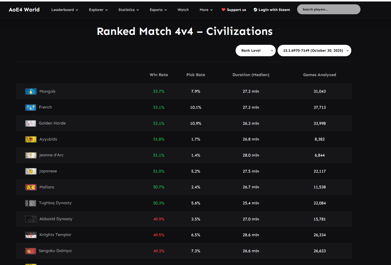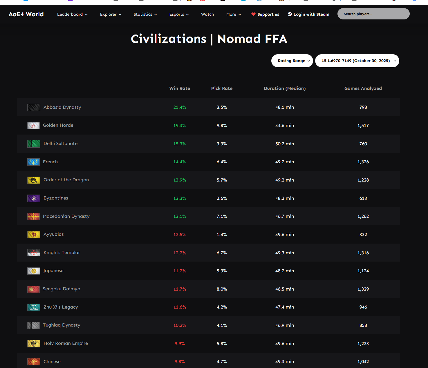 If your talking about winrates cuz not many ppl know of this build yet, once its published like i did and more ppl abused it, Golden horde will have highest winrate on team games 4vs4 and ffa