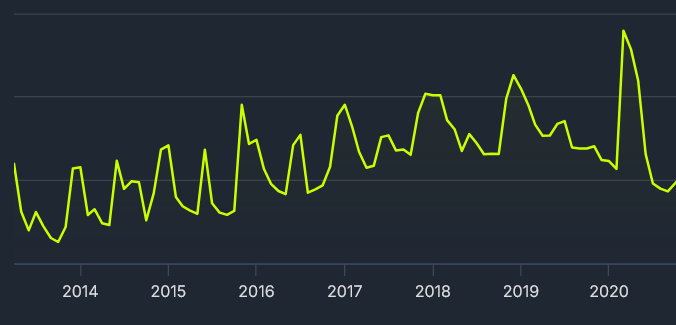 Even if you don’t care about multiplayer, the HD playercount was increasing for the entire lifetime of the game, with no major spikes for the DLC releases. (ie tell me which of those spikes on this graph are DLC, without googling the release dates)