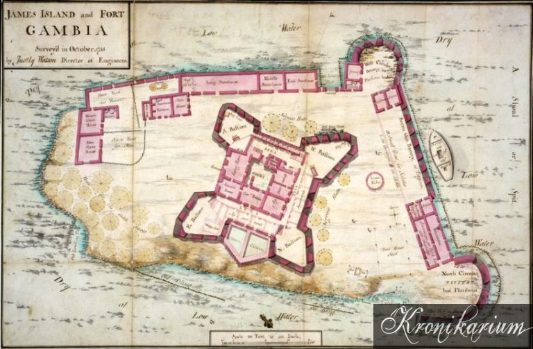 St. Andrews Island or Courlander Gambia, was also the later British Fort James. (1651–1660, 1660–1661)