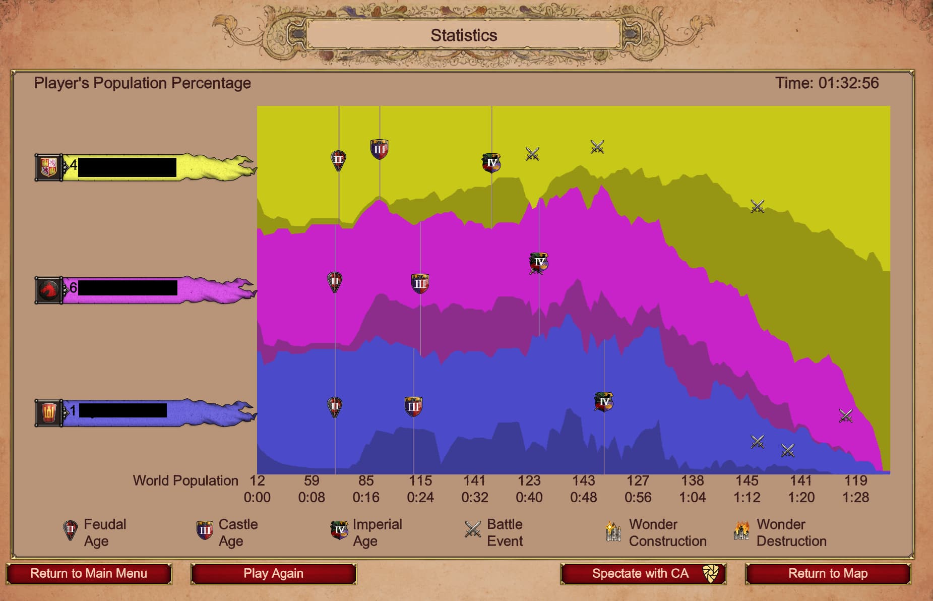 I tried Arabia, 200 pop, capped my villager pop to around 40 for a long time, and finally won. I barely survived their first typical, predictable, algorithmic, coordinated wave(s) of attack, so it wasnāt a pretty win. But playing it how the devs want me to play works. You must constantly think about offense because that is the funner state of mind, per the gameās design. Had I constrained myself to that earlier and done early attacks/raids, which is also probably in the gameās gold-encrusted āhow to playā guide book, I probably would have won more easily