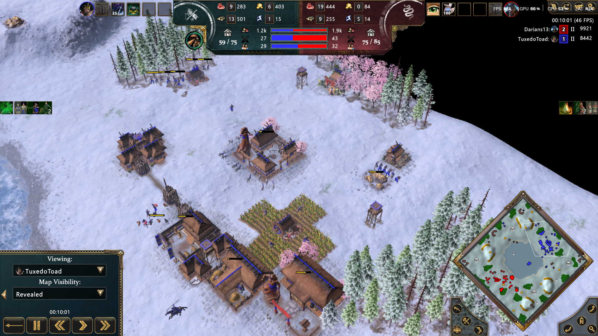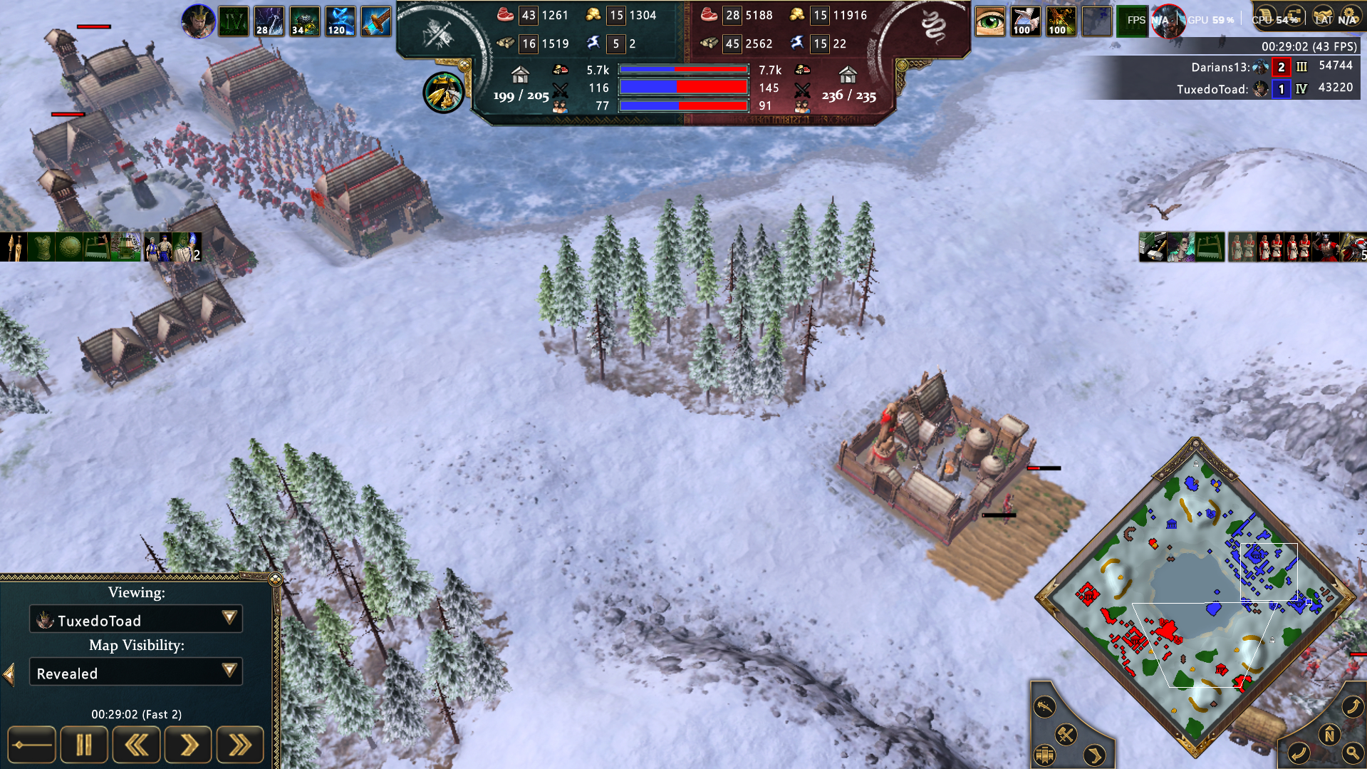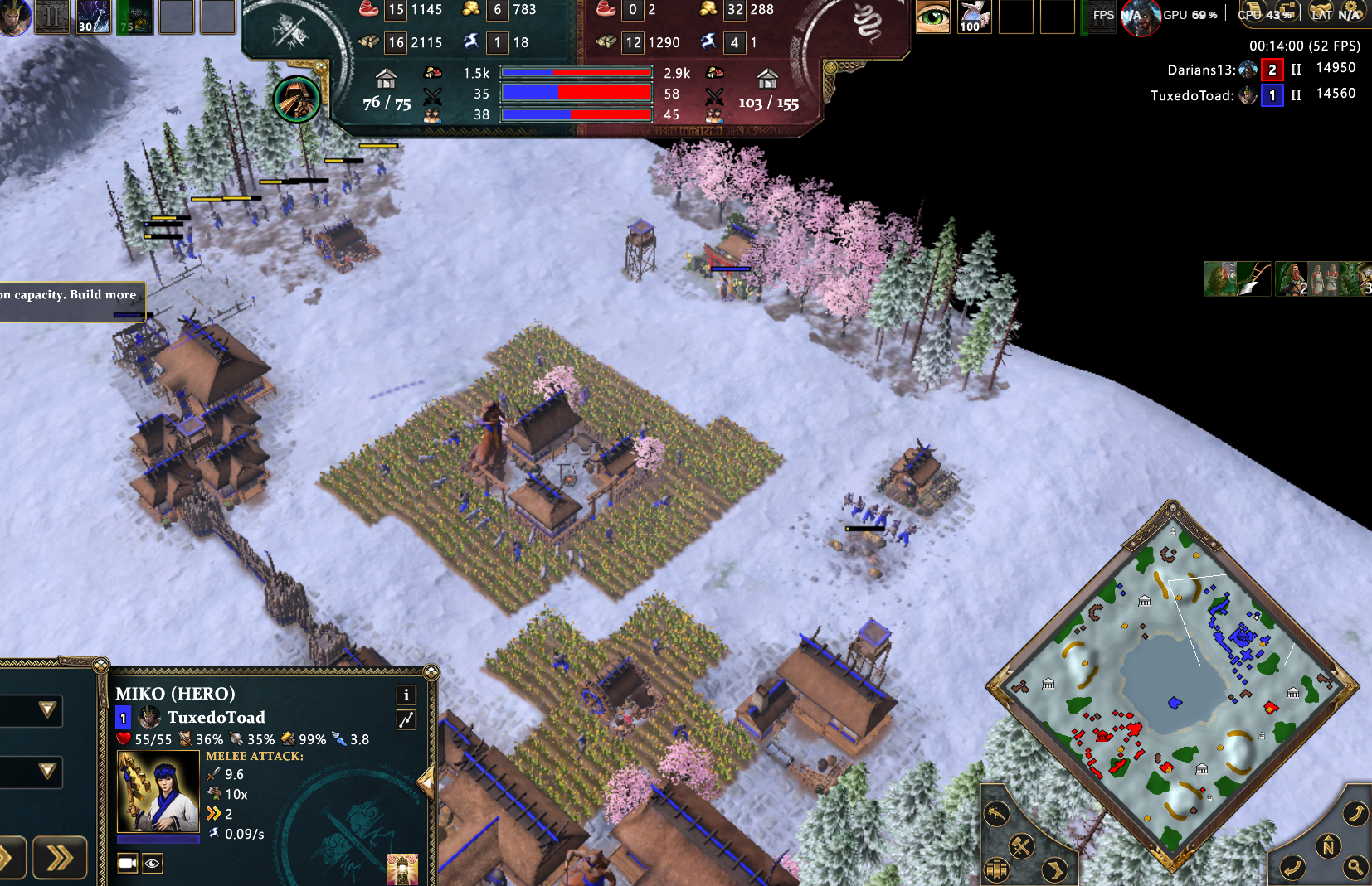 You reach points where you have 4-5 K wood. You should try to notice sooner and adjust your eco, with that many wood you could be in mythic age by now and would have def won that fight with either the sword or typhoon godpowers.