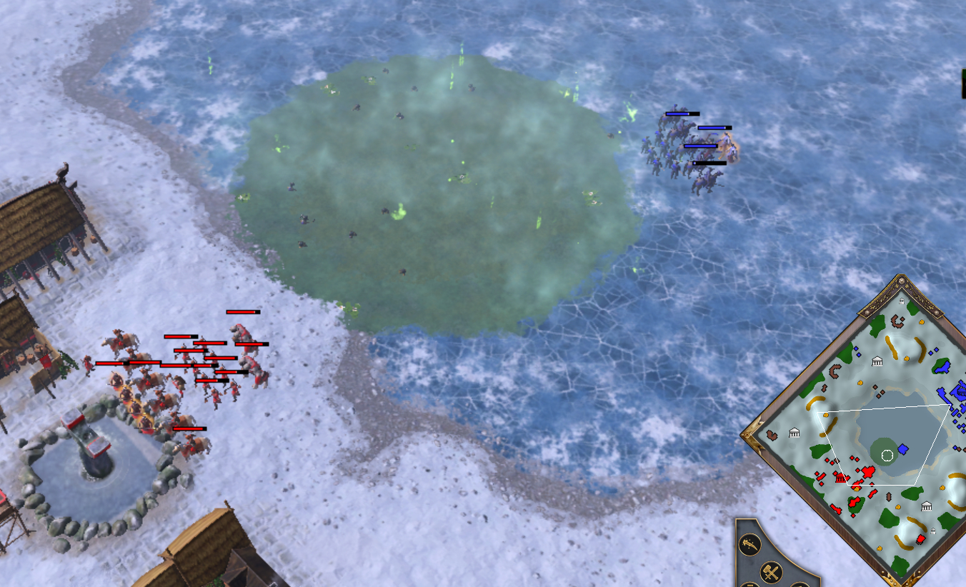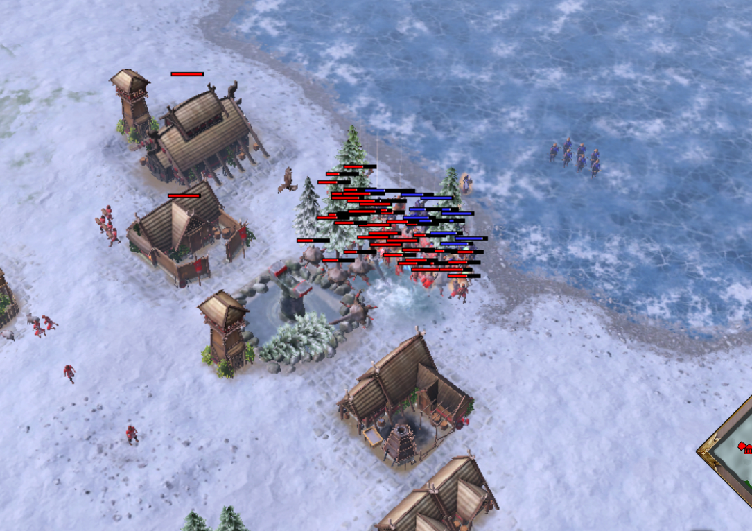 Be smart about where you fight, theres no reason to fight on the upper left full of towers and fortress instead of downwards that its just a town center.
