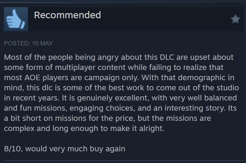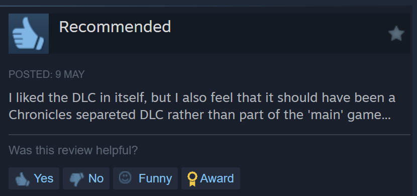 It should also be noted that most of the people who have issues with the DLC wouldn’t buy it. So using that as a metric for voting is extremely misleading and more biased towards the minority that bought the DLC in contrast with the majority who only have the base game.