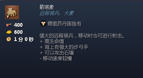 但如今大家都会玩这款游戏了,德里的战象从未出现在比赛中。当大象到达敌方阵营的时候,必然有足够的时间进行反击。无法像骑士那样,进行突袭。也无法像骑兵那样追击敌人,相反的会被任何兵种追击上,并且被击杀。而一个移动无比缓慢的骑#,##可以用几个骑士或者长矛兵轻松击杀。只有剑士和步弓手打不过塔象。而正面战场,假如敌人没有集中火力消灭塔象。塔象的攻击力也并不OP。我宁可建造一座城堡,或者一门手推炮,我也不会去考虑塔象。}