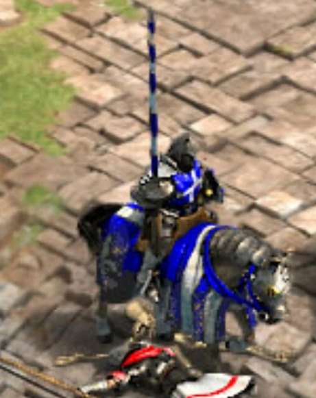 IMHO the irony this unit dissappeared as feudal fragmentation (or Castle age) started, so it could not meet the full-plate cavalry (Gothic knights, in-game Paladins).
