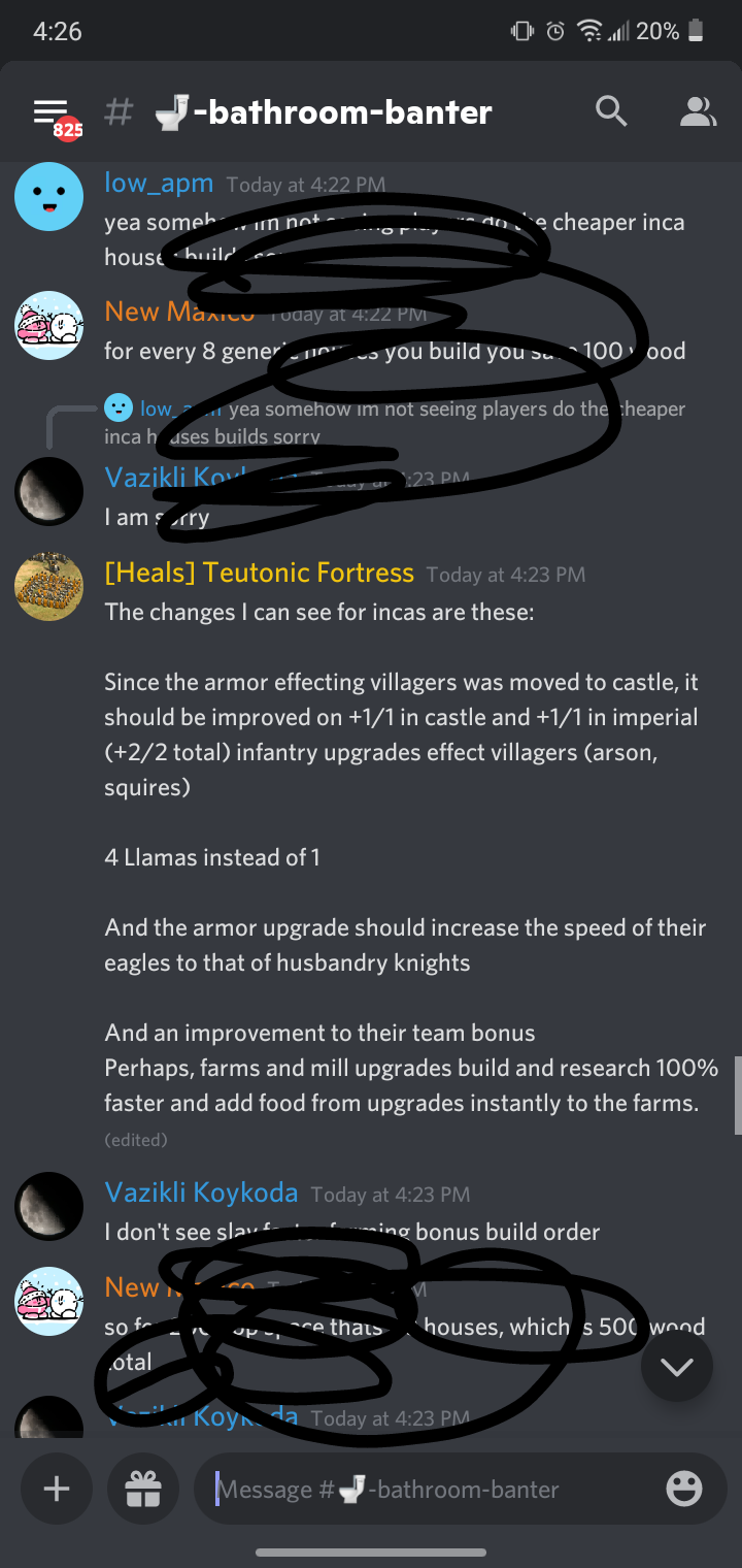 Llamas also make good scouts for finding boars and berries, so the starting scout cav can just leave immediately. 4 llamas does sound like a lot, maybe 2 would be better. IMO Incas do not need an early game food bonus, they need a late game gold bonus (like Mayans/Malians longer lasting mines, or Aztecs increased relic gold, or Burgundian vineyards). As soon as gold runs low they are dead, since they lack Hussars and their Skirmishers are not impressive.