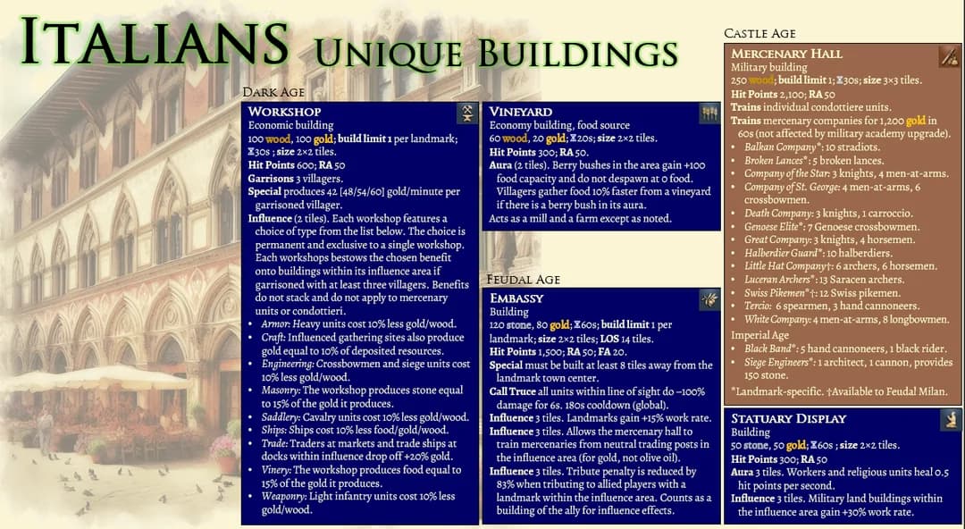 Of course, it also leaves room for future Italian Variants that have more landmarks from that specific civ.