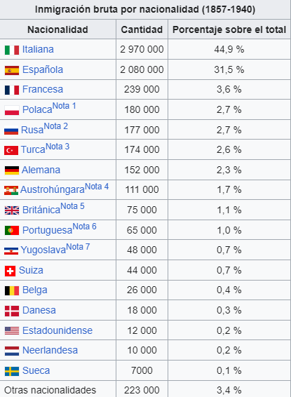 According to this graph, they are the third migratory flow between 1857-1940 and in my opinion it makes more sense than Germany, which does not take advantage of the Argentine revolution.