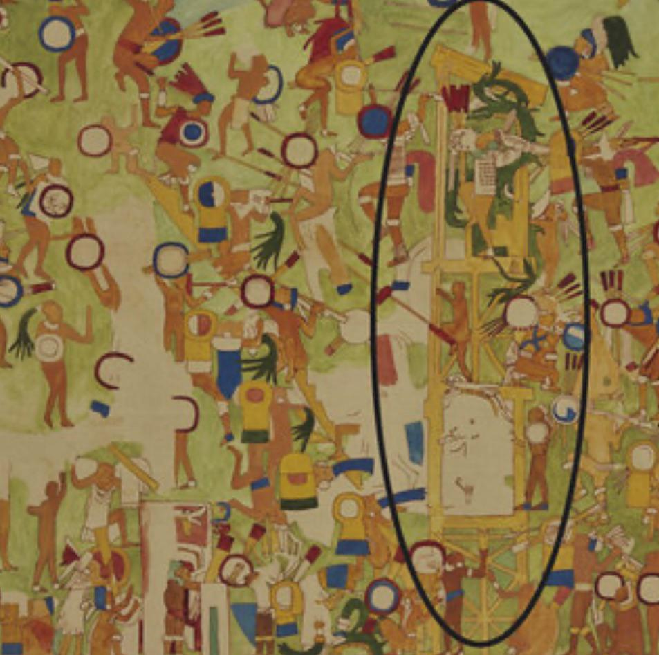 This was a Siege tower used by the Mayans who were the attackers. Thus the attackers could level with the higher walls of the defenders to shoot from a height or the same height.