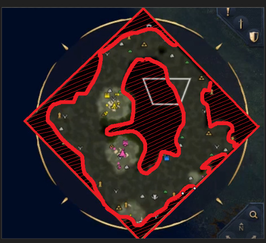 As far as I can tell, Srawberry, litterally, can’t see anything in the black regions (which I’ve highlighted/crossed out in red). And the enemy TCs are in those regions: