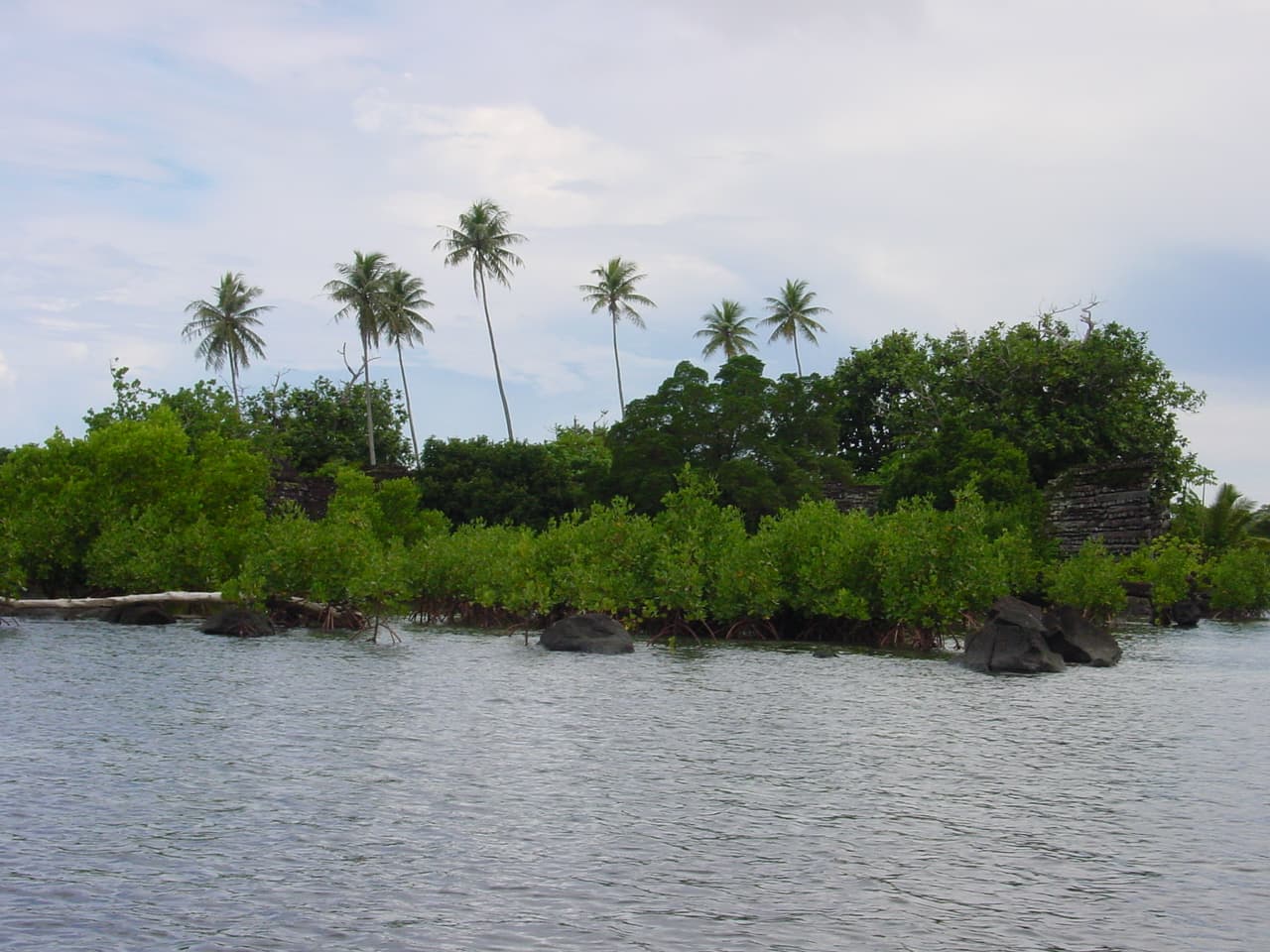 Nan Madol was the ceremonial and political seat of the Saudeleur Dynasty, which united Pohnpei’s estimated population of 25,000 people until about 1628.[3] Set apart between the main island of Pohnpei and Temwen Island, it was a scene of human activity as early as the first or second century AD. By the 8th or 9th century, islet construction had started, with construction of the distinctive megalithic architecture beginning 1180–1200 AD.