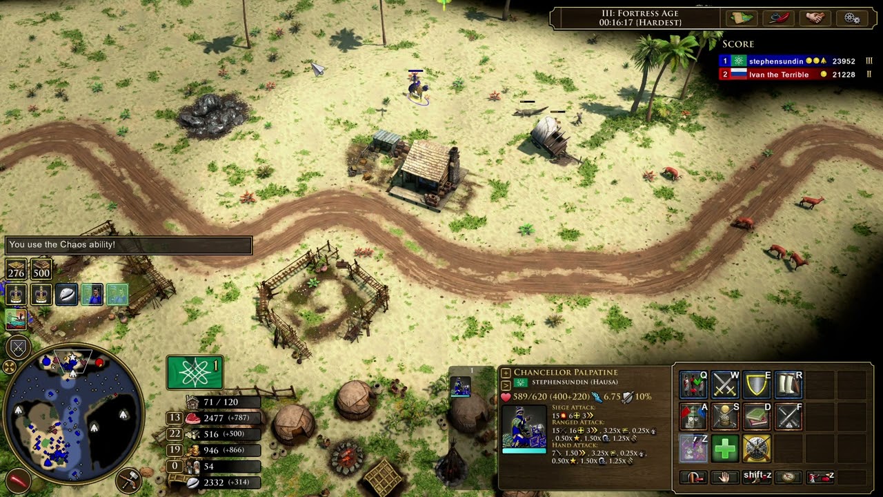 When using the chaos ability, you can migrate treasure guardians away from the treasure such that the strong treasure guardians will attack and pursue your units well outside of the usual radius and will not return to the treasure to guard it. This happens only with groups of different types of treasure guardians, and only if the strong treasure guardians are attacking weak ones.