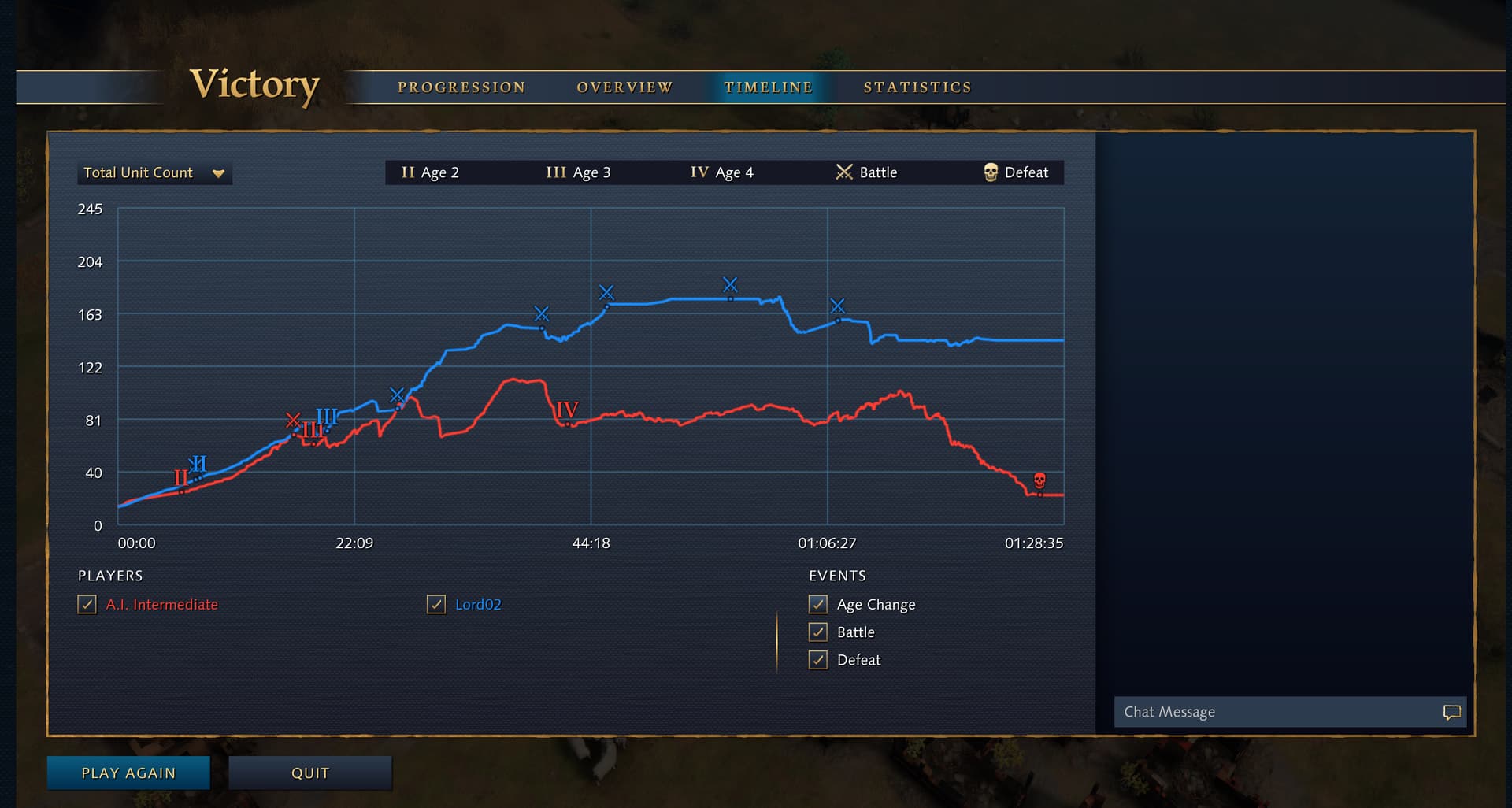 You can view my last game, played 2 hours ago, where I surely went all the way to age IV but it I just see age II in the summary ( where I can compare all the 4 teams that were competing ). I shows III and IV for all the other players, but it’s like I was stuck at age II, but again … I surely reached the IV age!