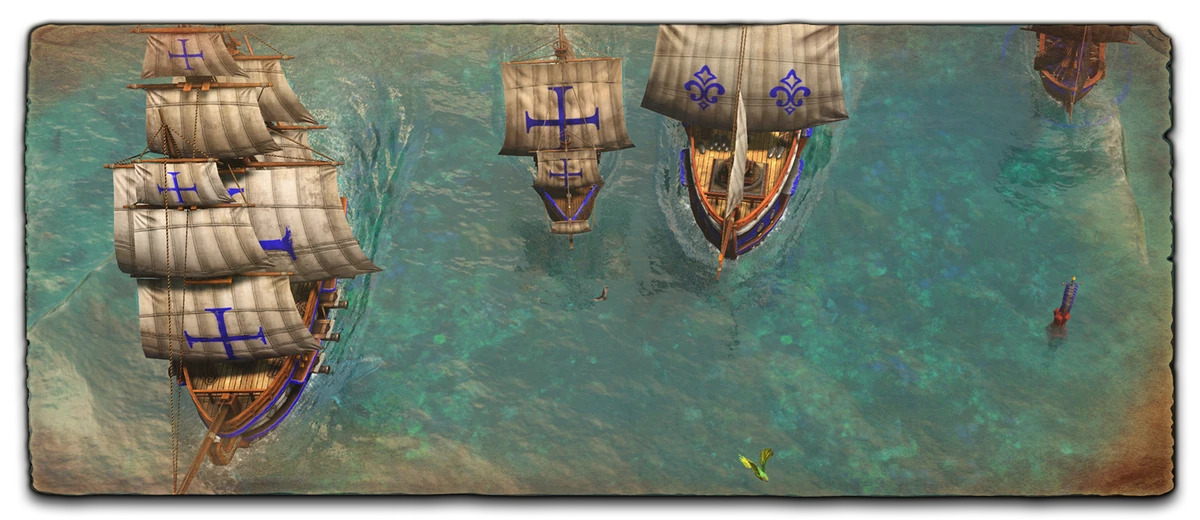 Yes, I remember that the ships had a lot of their aesthetics and animations removed for reasons I donât understand. For example, the crosses they usually have on their sails were eliminated, and the sail-folding/unfolding animation when switching from moving to stationary mode was removed entirely.