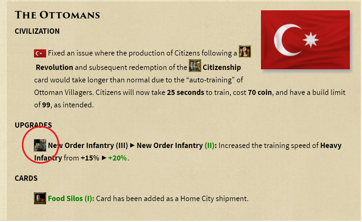 - [NEW] War Hut Training (II): Improves the training speed of Haudenosaunee War Hut units by +35%.