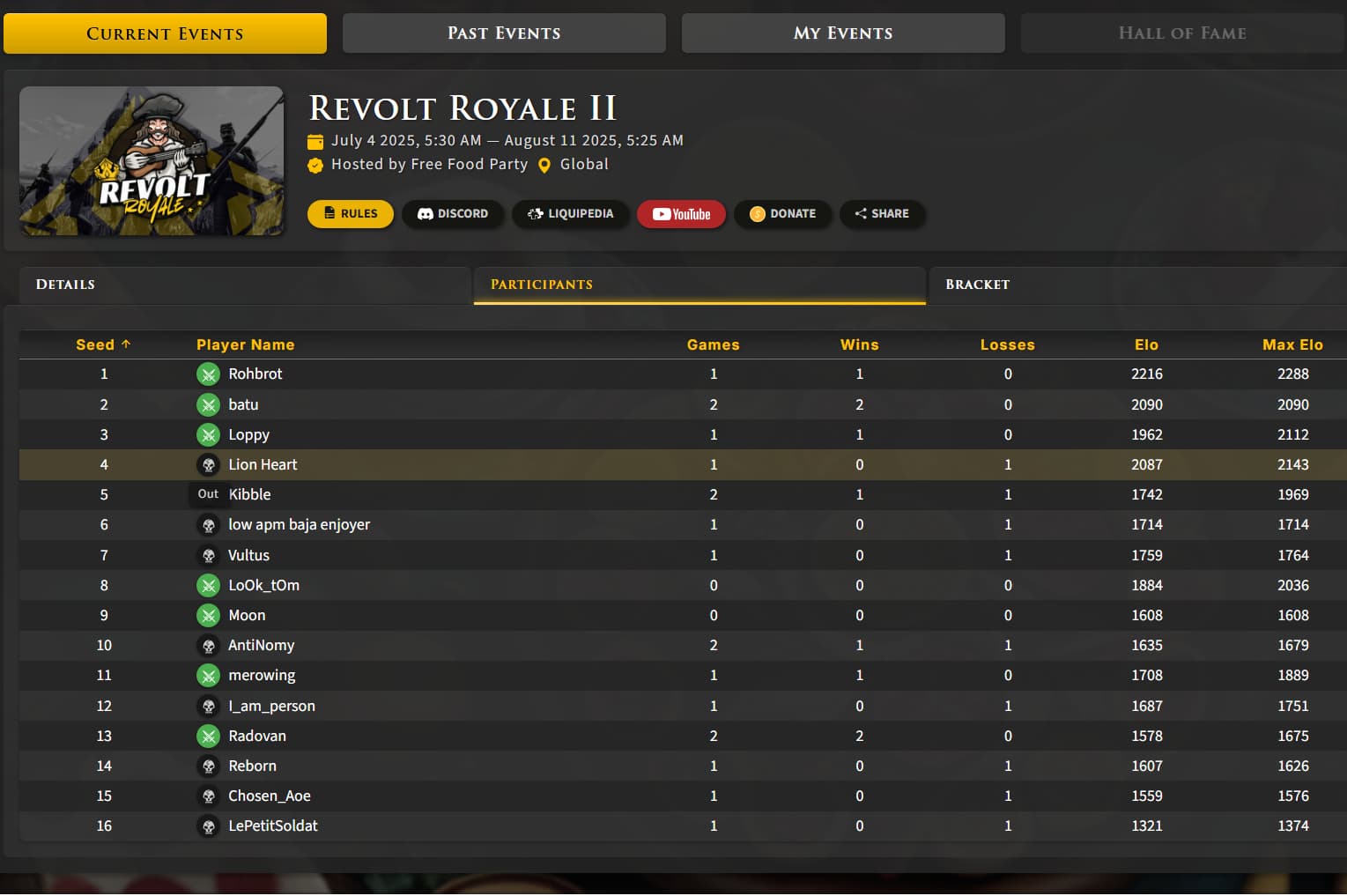 in past, ask your host to add your name as the tournament winner, to earn the tournament badge/medal on your profile later. - Meet the community at our discord here