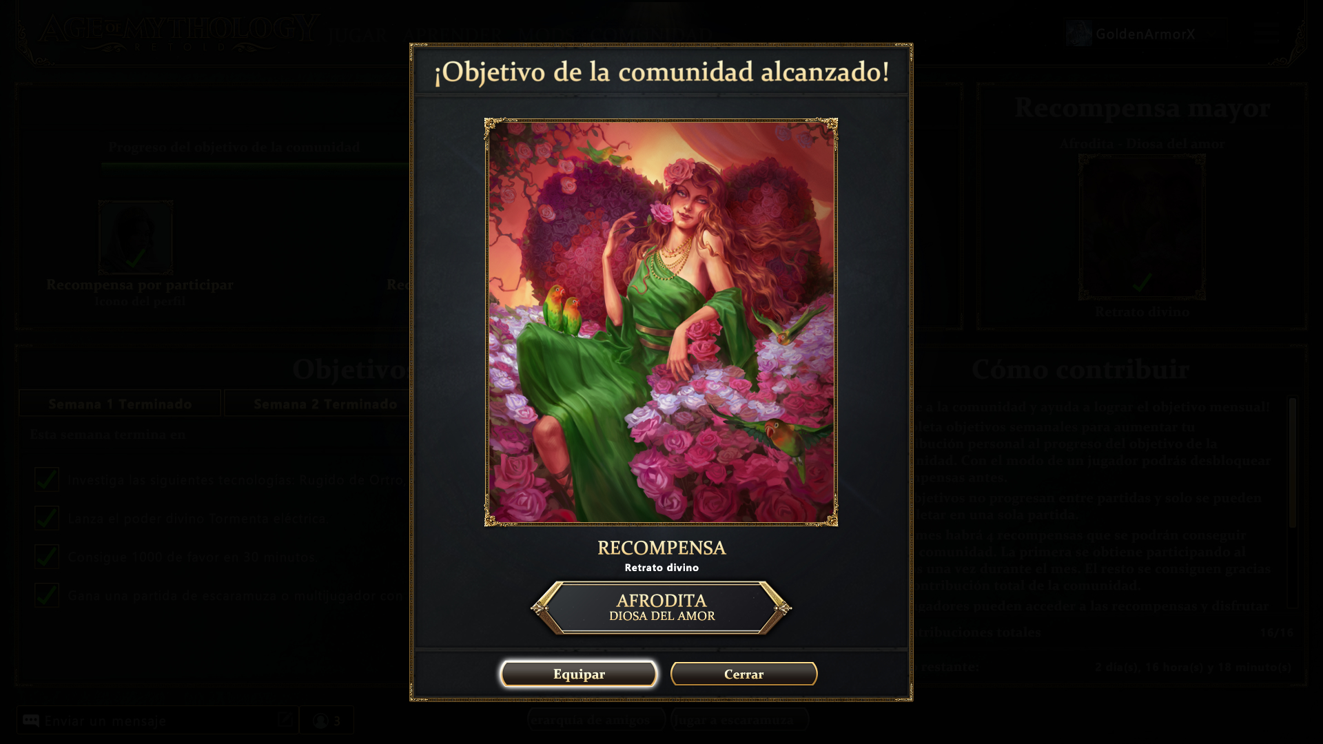 This is me, GoldenArmorX. A year ago, the Monthly Community Event, “Pantheon Pin-Up Event”, began. In this event, new illustrations and portraits of gods are unlocked each month if enough games are played globally, fulfilling the monthly objectives, or if all objectives are completed by the last week of the month.