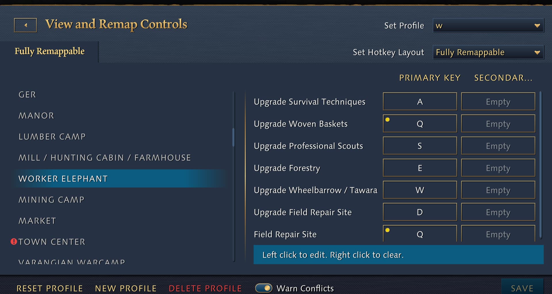 In Town Center selection, no Hotkey for Worker Elephant