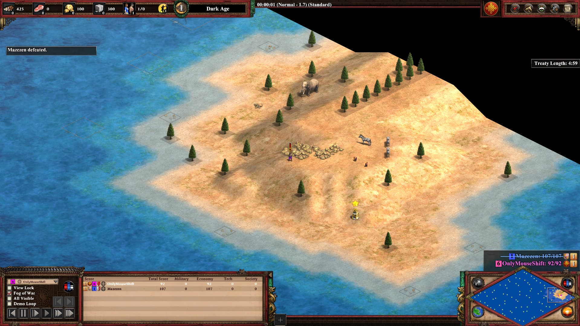 Nomad generation caused a bugged map where player 2 didnt spam, and player one spammed with 1 vil in a small corner island, granting automatic victory