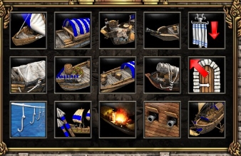 The other UU ships need an extra button slot for the elite upgrade; the hoax ship is unlocked in Imperial Age and has no upgrade.