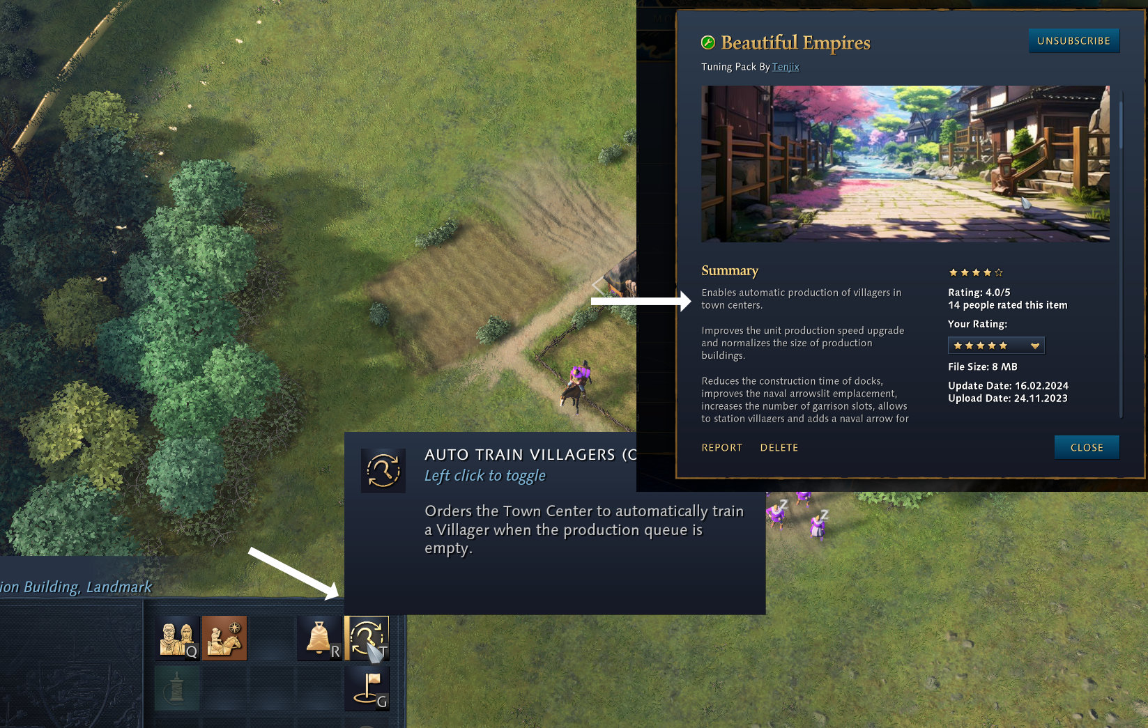 Have you tried the auto-build villagers feature in the tuning pack Beautiful Empires by Tenjix? Itâs a game-changer, along with a host of other minor tweaks that enhance the overall gameplay experience. Letâs rally for its inclusion in future updates!
